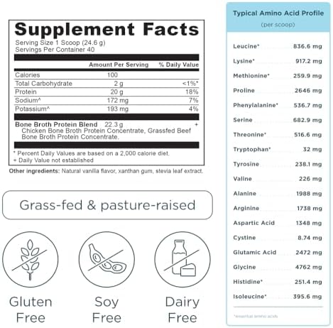 Powerful Bone Broth Nutrition: Delivers 20g of protein per serving with hydrolyzed collagen types I, II & III, glucosamine, chondroitin, hyaluronic acid, and 18 amino acids to support overall wellness.
