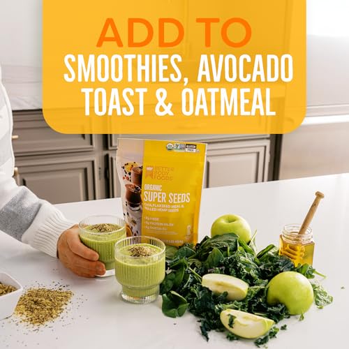 CERTIFIED DELICIOUS: BetterBody Foods Organic Super Seeds are Gluten Free, Non-GMO, Kosher, and USDA Organic certified, so you don’t have to worry when you add it to your recipes as a fiber-rich, nutty addition to smoothies, oatmeal, shakes, yogurt or cereal