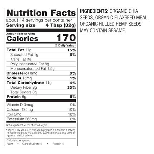 For super nutrition, it’s time to go to seed. For little, itty-bitty things, these three seeds, chia, flax, and hemp, pack a powerful punch. First, you’ve got chia seeds, which have a much-deserved reputation for Omega-3. Next comes flax seeds, also an Omega-3 dynamo. Last but not least, hemp seeds give you essential fatty acids (EFAs) your body needs but doesn’t create. With a slightly nutty flavor, this blend of chia seeds, flax seeds, and hemp seeds will put pizzazz into your yogurt, oatmeal or cereal. And add it to any smoothie or shake you make. So go forth and get some chia, flax, and hemp seeds in your eats. BetterBody Foods Super Seed Powder, 1.0 Lb (16 oz).