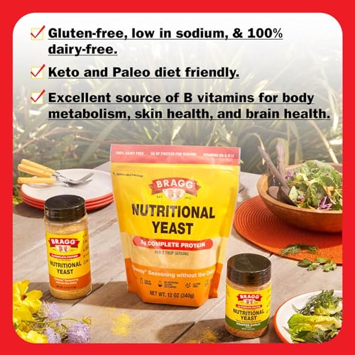 Bragg Nutritional Yeast is a delicious vegan and gluten-free Parmesan alternative with complete protein and 6 B vitamins.