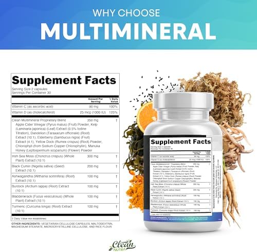 A Powerful All In One Supplement – Clean MultiMineral is overflowing with potent Sea Moss Supplement, Black Seed Oil capsules, Aswagandhada capsules, Burdock Root, Bladderwrack and turmeric powder. Clear out those countless supplements in your supplement cabinet, and replace it with just one seamoss powder, black seeds oil, aswagandhada capsules, and burdock supplement 15-in-1 formula from Clean Nutraceuticals. We made Irish seamoss bladderwrack burdock capsules better by adding black seed.
