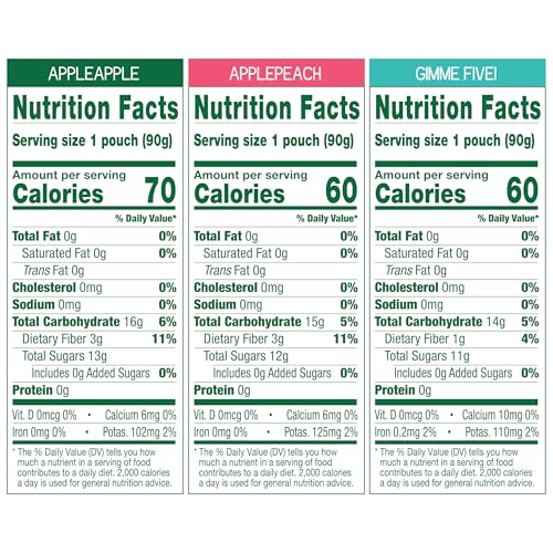 Stock up with this variety pack of three yummy GoGo squeeZ Applesauce and Fruit Puree varieties: Apple Apple, Apple Peach and Gimme Five!. GoGo squeeZ Fruit on the Go Apple Apple is our signature applesauce flavor, made with apples and yumminess, for a tasty snack anytime, anywhere. Holy peach there’s finally a delicious treat that’s portable with GoGo squeeZ Fruit on the Go Apple Peach. GoGo squeeZ Fruit on the Go Gimmme Five! is a delicious blend of apple, mango, strawberry, peach, and banana for a sweet and tasty snack anytime, anywhere. These unsweetened fruit snacks are made from fruit with no high fructose corn syrup (HFCS), no added colors or flavors and no sugar added.* All that lip-smacking fruit in one no-fuss, no-mess and convenient kids snack! GoGo squeeZ unsweetened fruit snacks are Non-GMO Project Verified, gluten free, nut free, dairy free and kosher certified. Our products are free of all 9 major allergens, so you, your kids and your whole family can enjoy GoGo squeeZ snacks with confidence and share them without worry. GoGo squeeZ pouches are BPA free and feature easy-open caps and a built-in straw. No spoon, and no mess! From GoGo squeeZ Fruit on the Go, GoGo squeeZ fruit and veggieZ, GoGo BIG squeeZ, GoGo squeeZ Happy tummieZ, and GoGo squeeZ Morning smoothieZ to GoGo squeeZ yogurtZ, there’s a variety of snacks to please every child (and adult!) in your family. *Not a low calorie food. See nutrition information for sugars and calorie content.