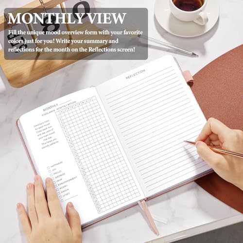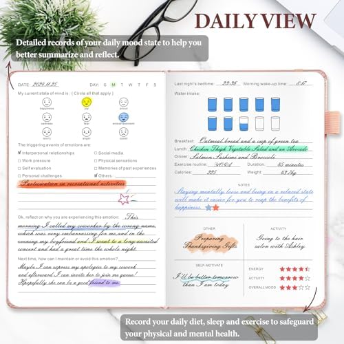 [High Quality] Our A5-sized (5.8 x 8.5 inches) mood tracker journal for women has high quality leather cover, 100gsm paper, pen loop, elastic closure, and 3 bookmarks. Can better match your daily use needs