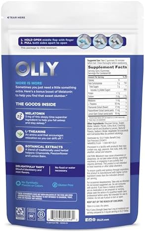 OLLY EXTRA STRENGTH SLEEP GUMMIES: Melatonin gummies, with L-Theanine that works with your body to help you fall asleep and stay asleep*