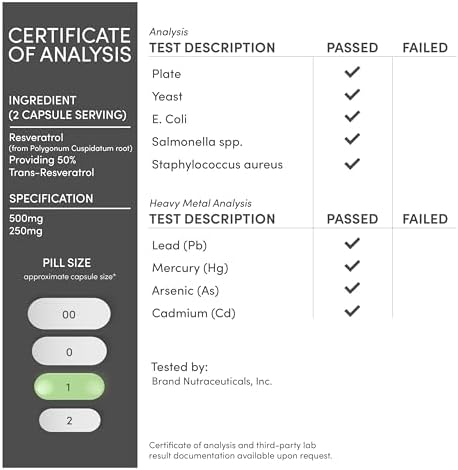 TWO MONTH SUPPLY: Each bottle contains 120 capsules, enough to provide 60 servings of 500mg Resveratrol