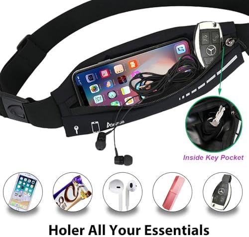 [FITS All CELL PHONE] Slim, comfortable workout fanny pack keeps a low profile on your waist, while the expandable pockets allow you to carry any sized phone, key, money etc. Runners Belt fits all smartphones with case.
