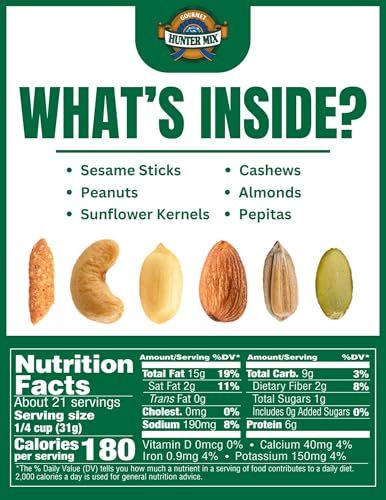 Savory Deliciousness ─ An irresistible blend of sesame sticks, roasted peanuts, sunflower kernels, almonds, cashews, and pepitas, Gourmet Hunter Mix is infused with a unique medley of spices for a flavorful and crunchy experience